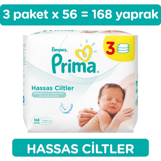 Prima Islak Havlu Hassas Ciltler İçin 3’lü Fırsat Paketi 168 Yaprak